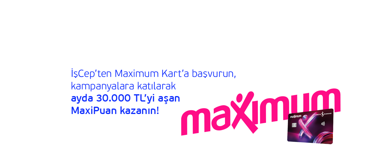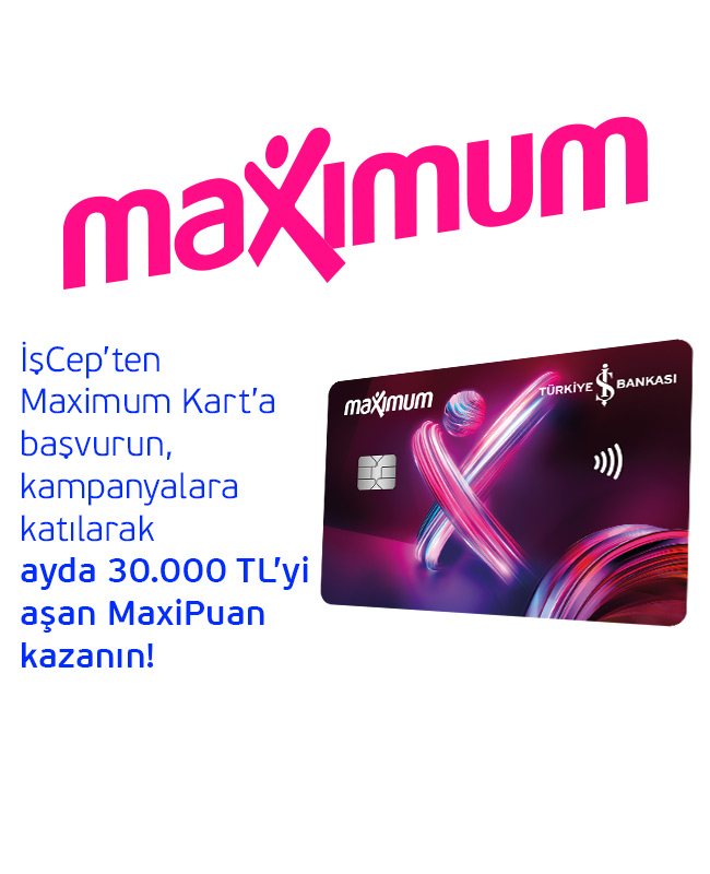 Maximum Kart ile Türkiye çapında sayısı 440.000’i aşan Maximum üye işyerinde alışverişlerinizden MaxiPuan kazanıp, biriktirdiğiniz MaxiPuanları Maximum üye işyerlerinde kullanabilirsiniz.
